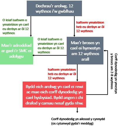 Rydym yn argymell i Gydweithiwr Cefnogol Meddygol(SMC) y dylid adolygu'r adroddiad o fewn 7 diwrnod a'i ryddhau i chi ar ôl ei adolygu